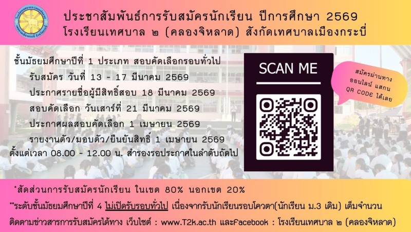 รับสมัครนักเรียนรอบททั่วไป ระดับชั้น ม.1 ปีการศึกษา 2569